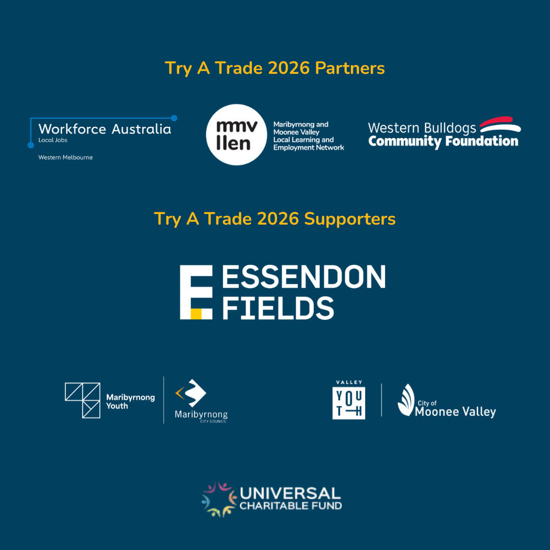 In 2026, we’re running Try a Trade over two days, with partners Workforce Australia Local Jobs Western Melbourne and Western Bulldogs Community Foundation!